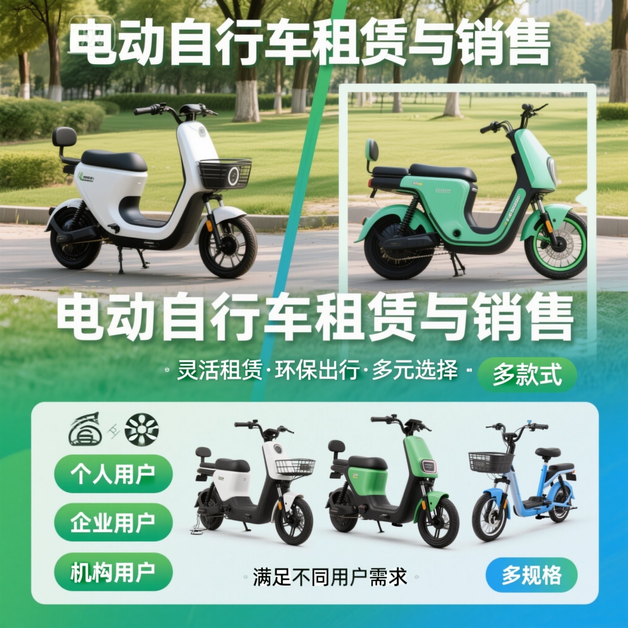 为个人用户、企业及机构提供灵活、环保的电动自行车租赁解决方案,同时销售多款式、多规格的车型,满足不同用户的多元化需求。